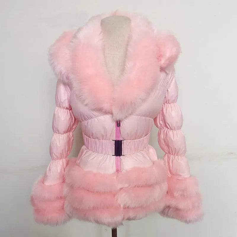Faux Fur Detachable Sleeves Hooded Puffer Jacket  Details :